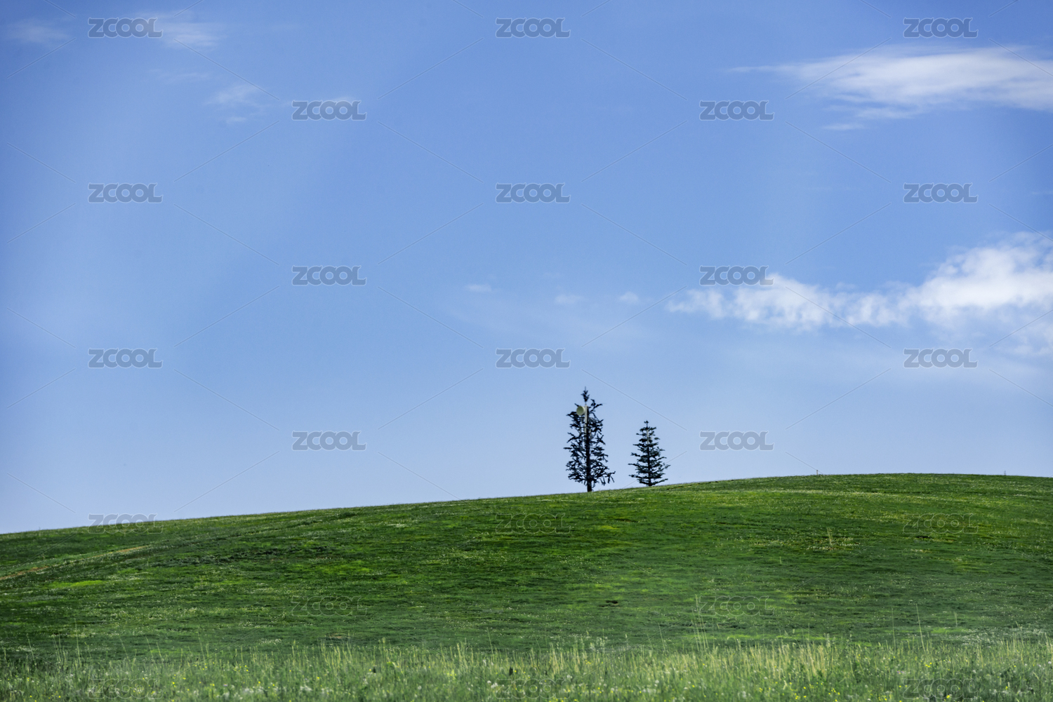 草原树林蓝天白云地平线户外风景
