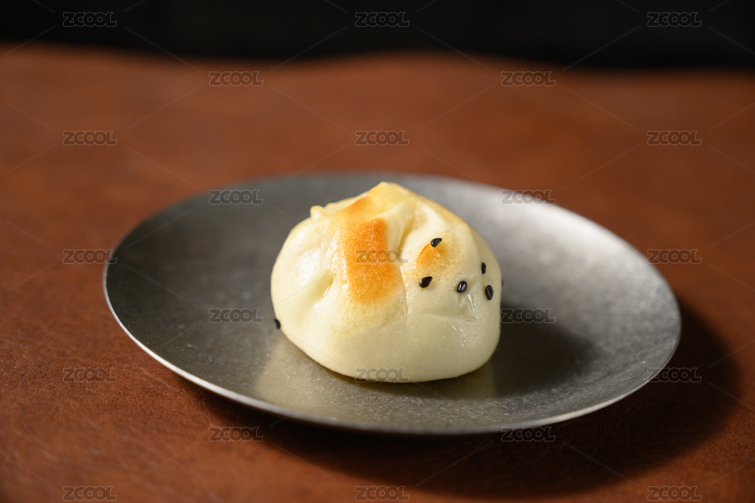 桌面上的盘子里的美味可口的肉煎包