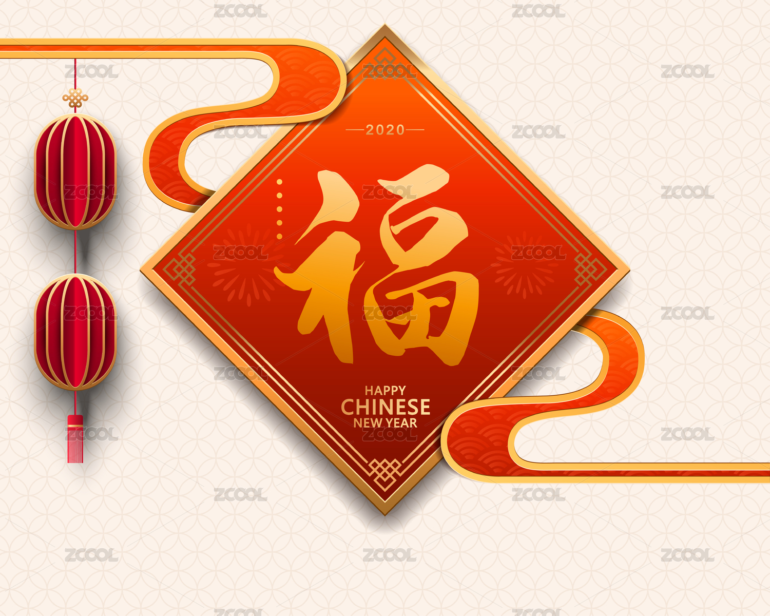 福,中国传统新春佳节,新春快乐,灯笼背景图