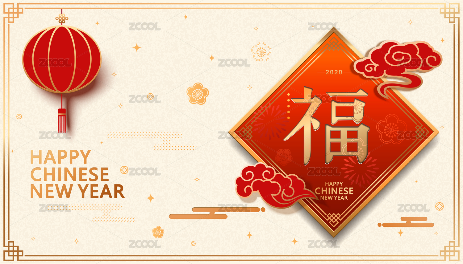 新春对联—福,中国新年红色背景图,新年贺卡模板,红色的灯笼和祥云