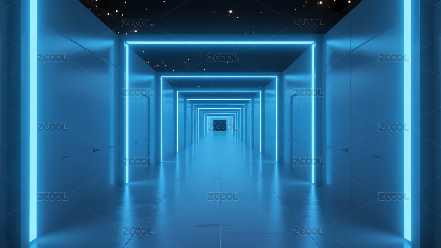 蓝色霓虹星空走廊
