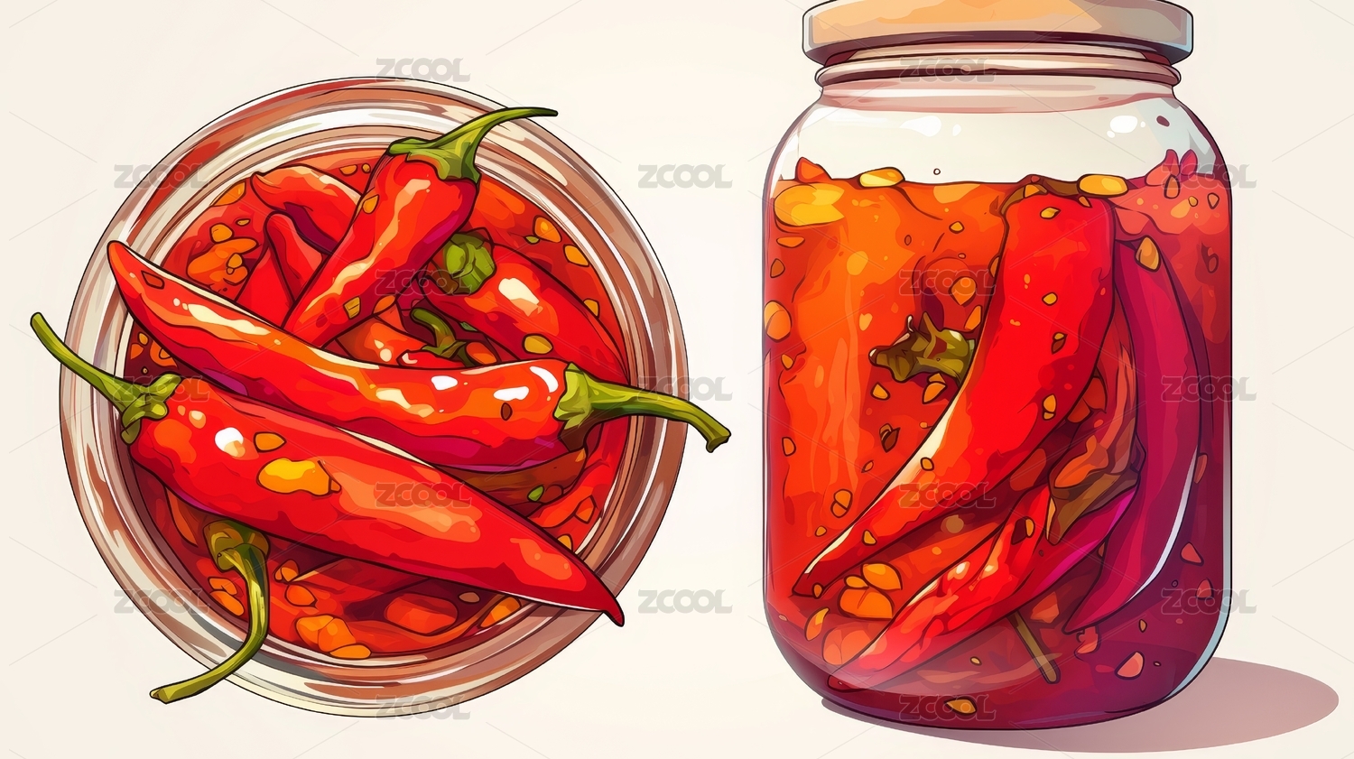水彩手绘辣椒酱的诱惑