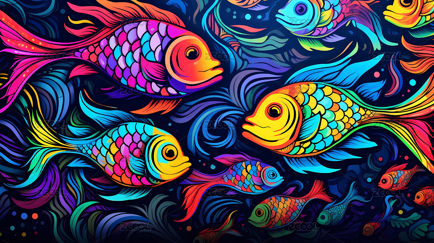 鱼图案抽象流体画设计海报背景
