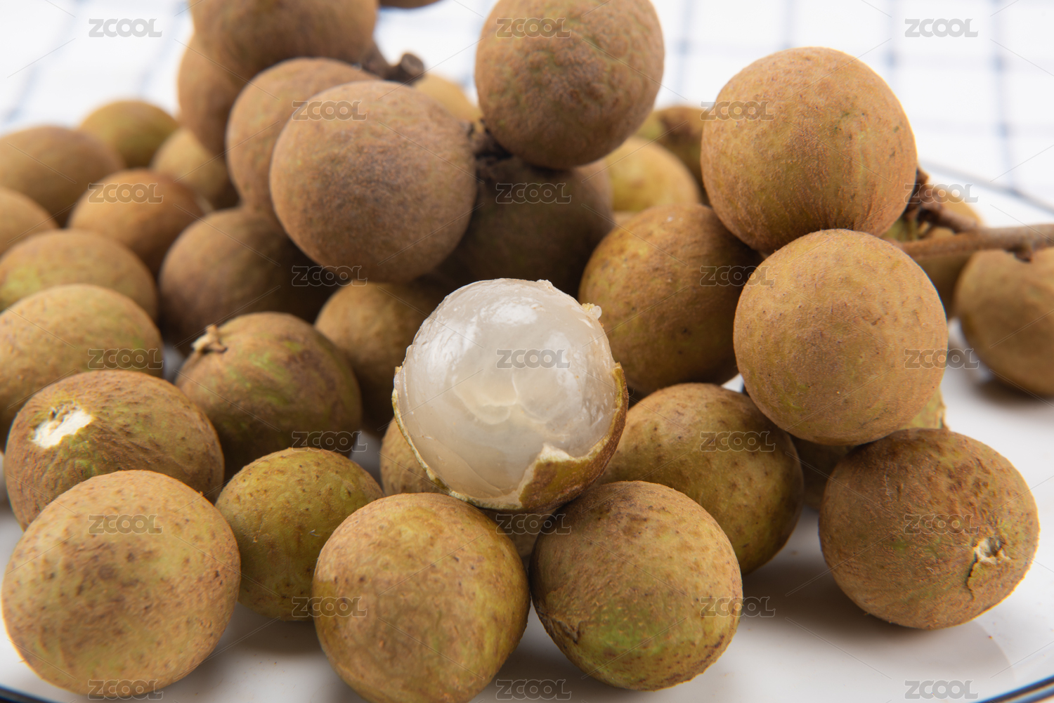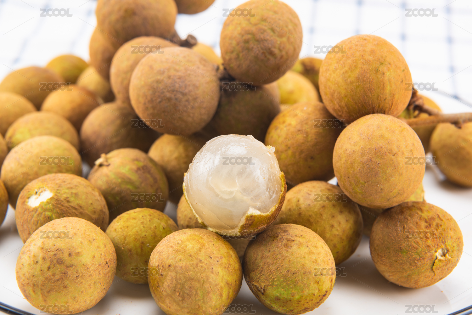 网格布背景上上的一盘龙眼
