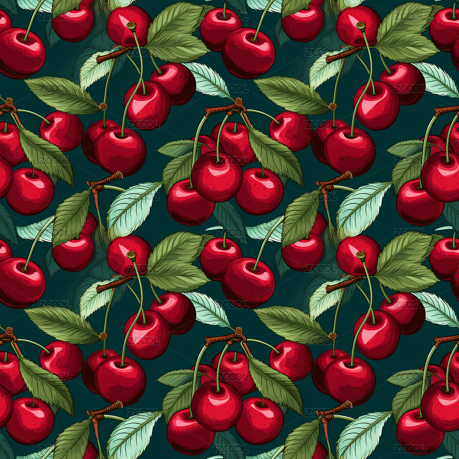 四方连续花纹樱桃果实底纹插画