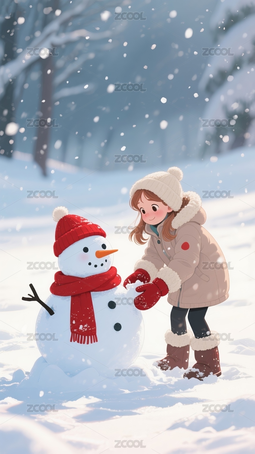 雪人,孩子,冬天,下雪,帽子,雪景,童年,冬季,场景,插画