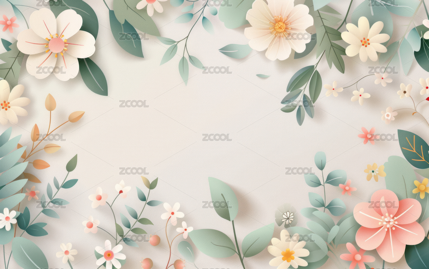 白底鲜花边框背景