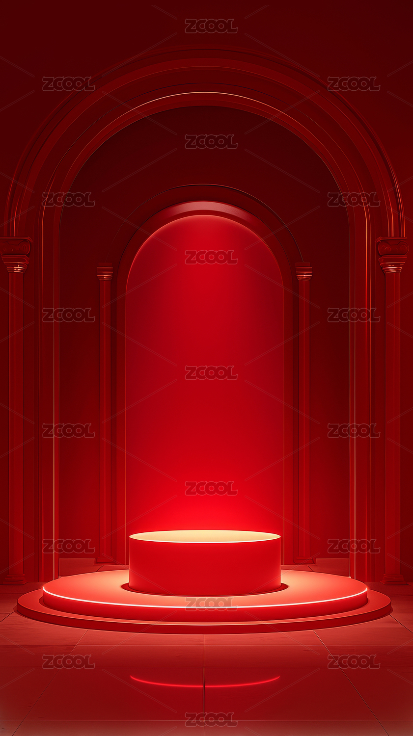 红色,中国风,圆形,展示台,舞台,背景,商务,设计,展览,简单