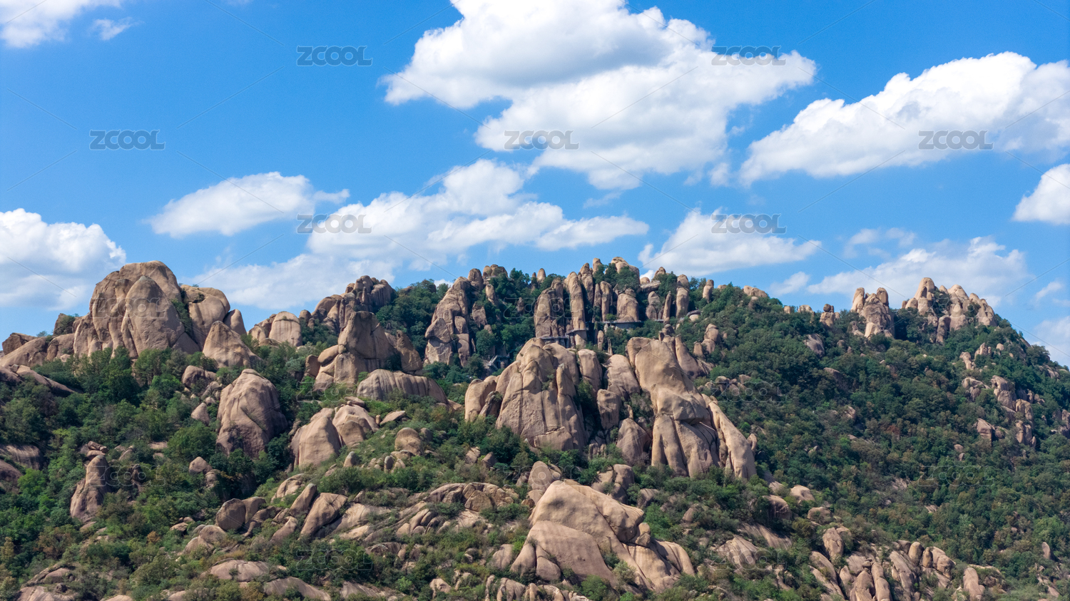 蓝天白云下河南驻马店花岗岩地质地貌嵖岈山