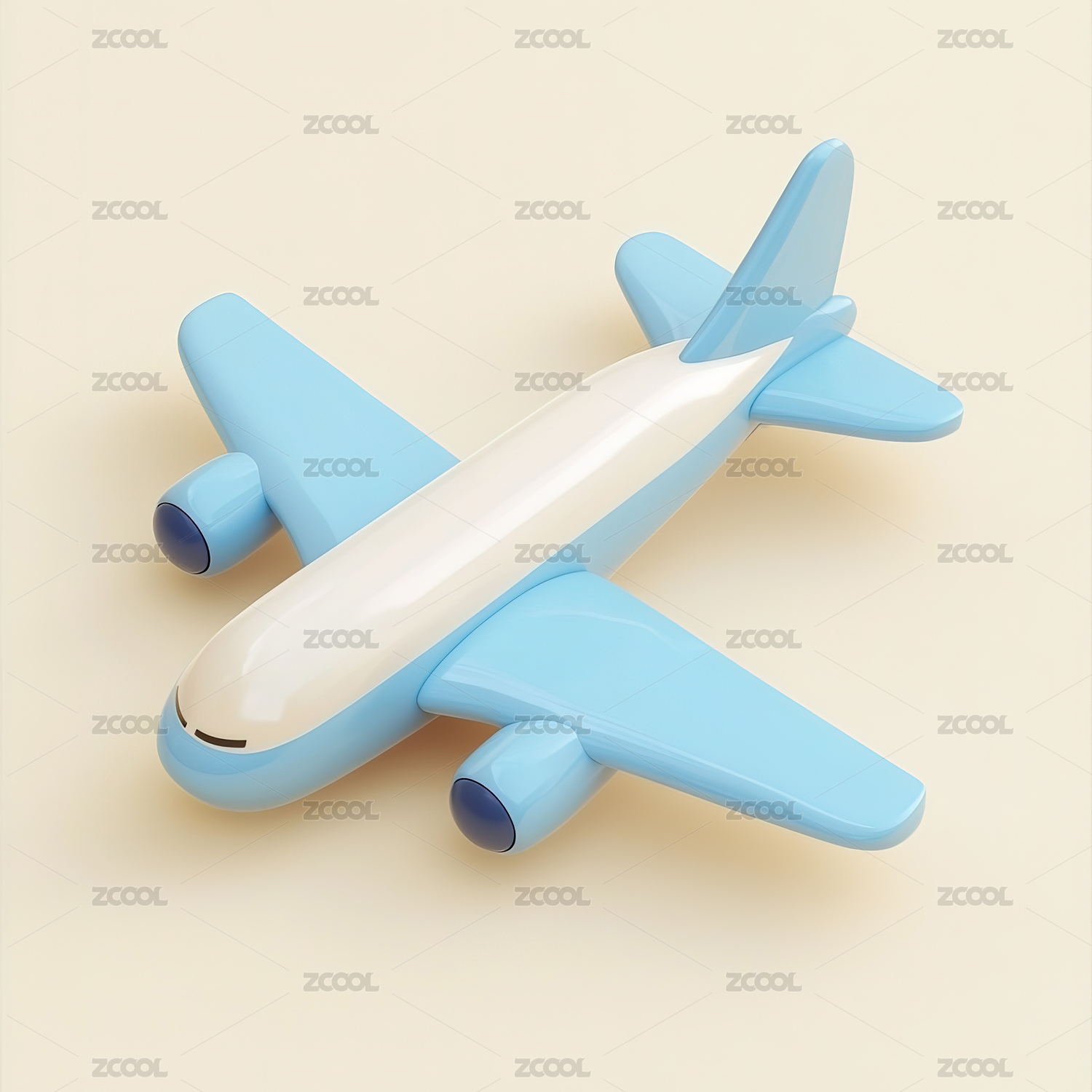 卡通飞机模型3D渲染,儿童节快乐童年玩具