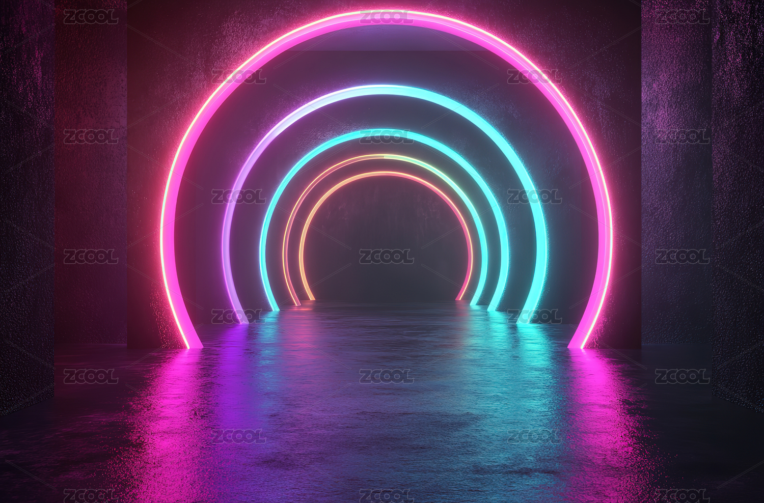 霓虹灯环走廊未来感场景