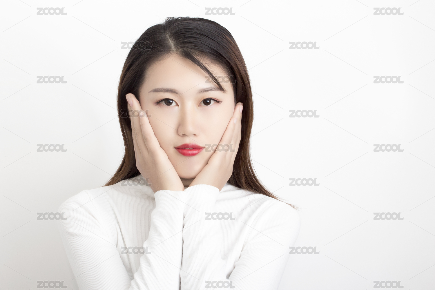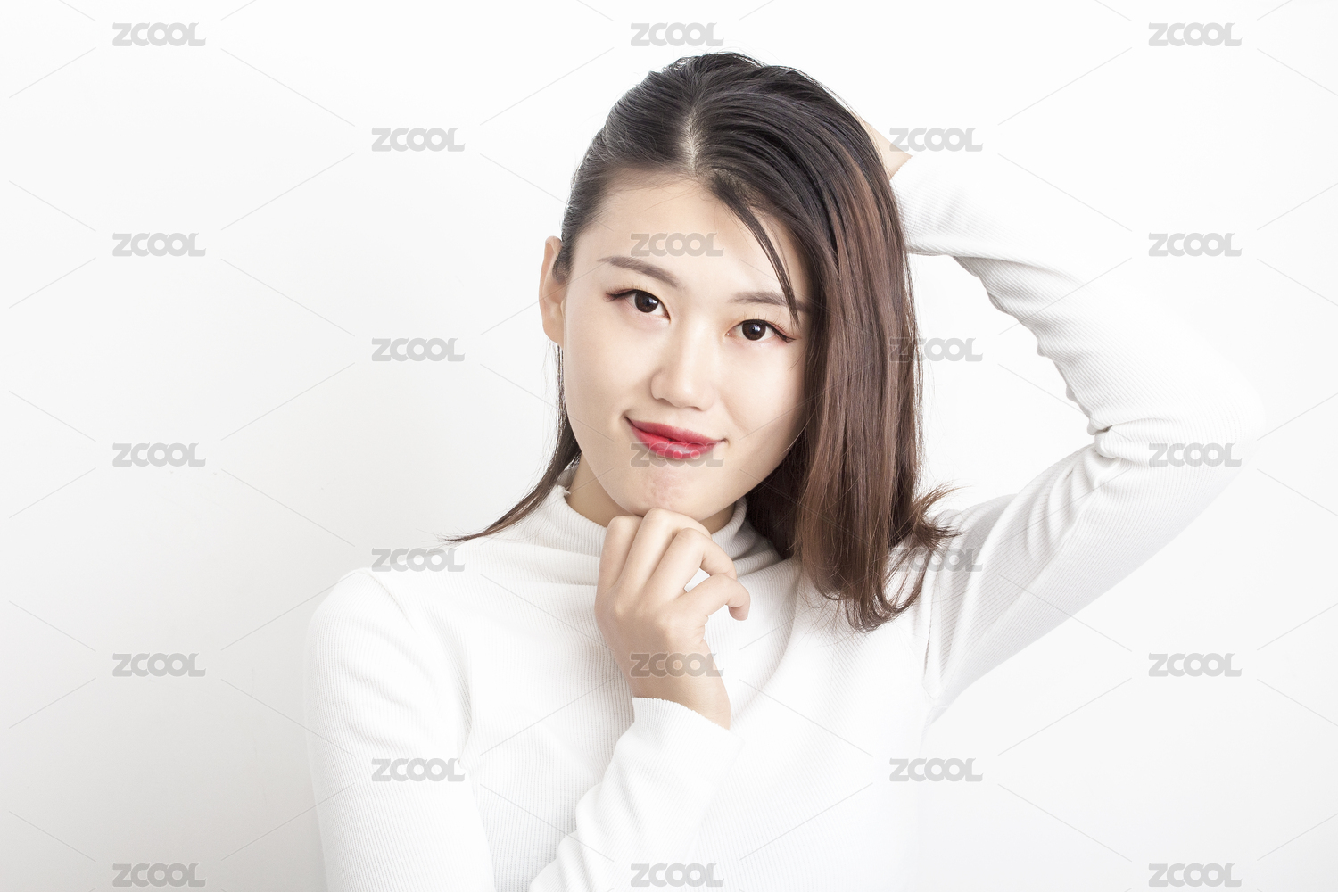 白背景下的中国年轻女性