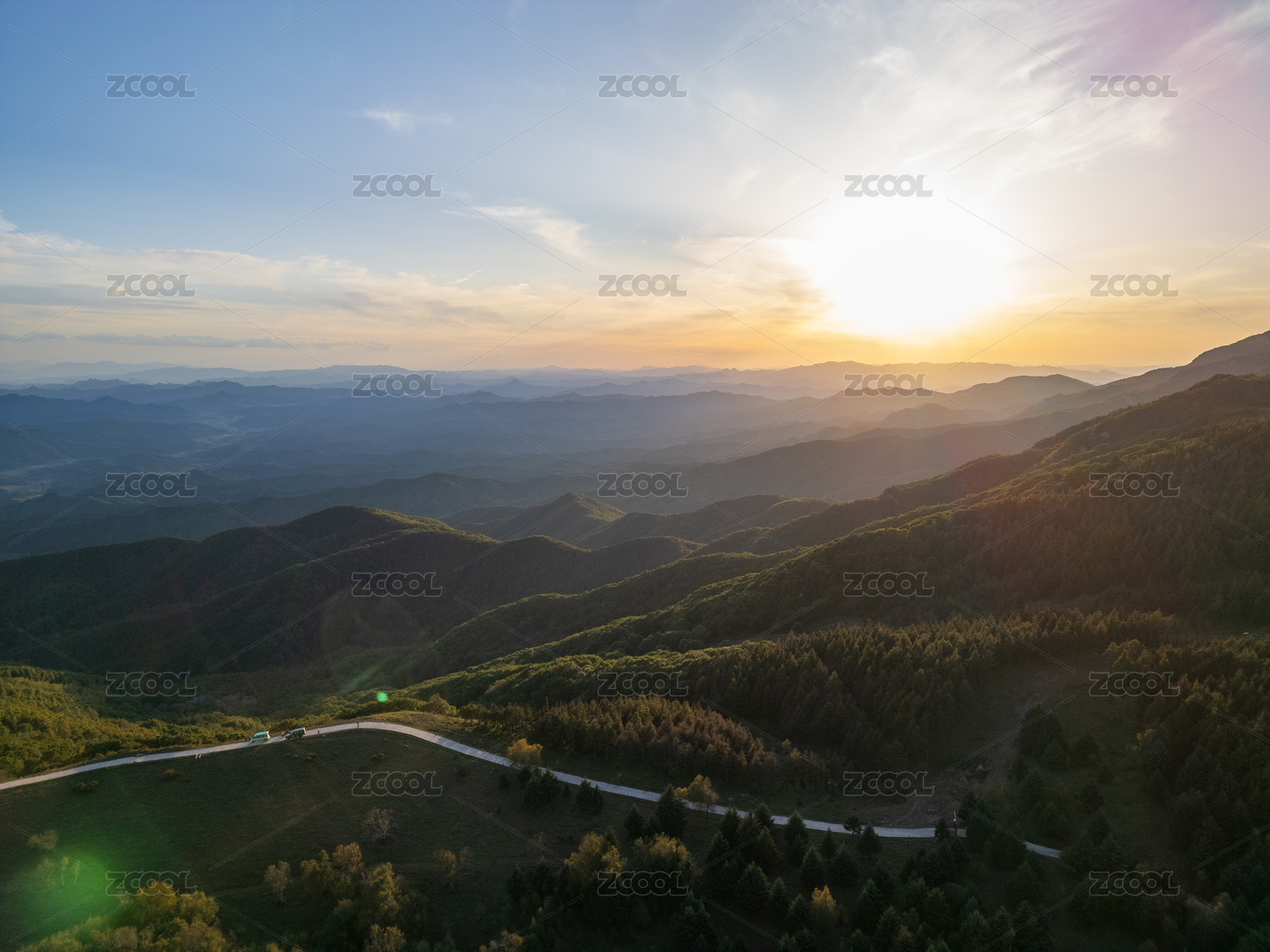 内蒙古赤峰道须沟云中草原日落航拍