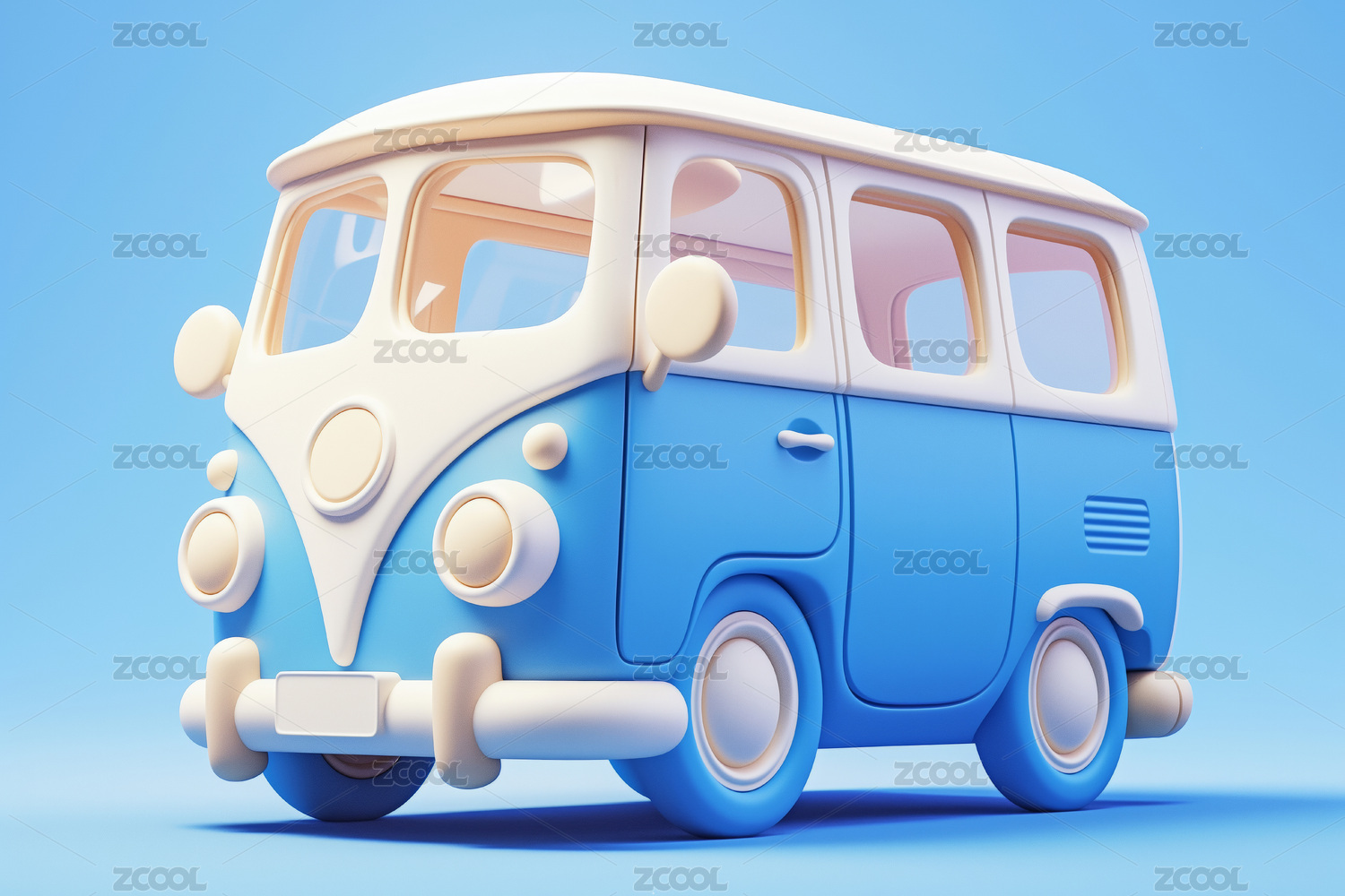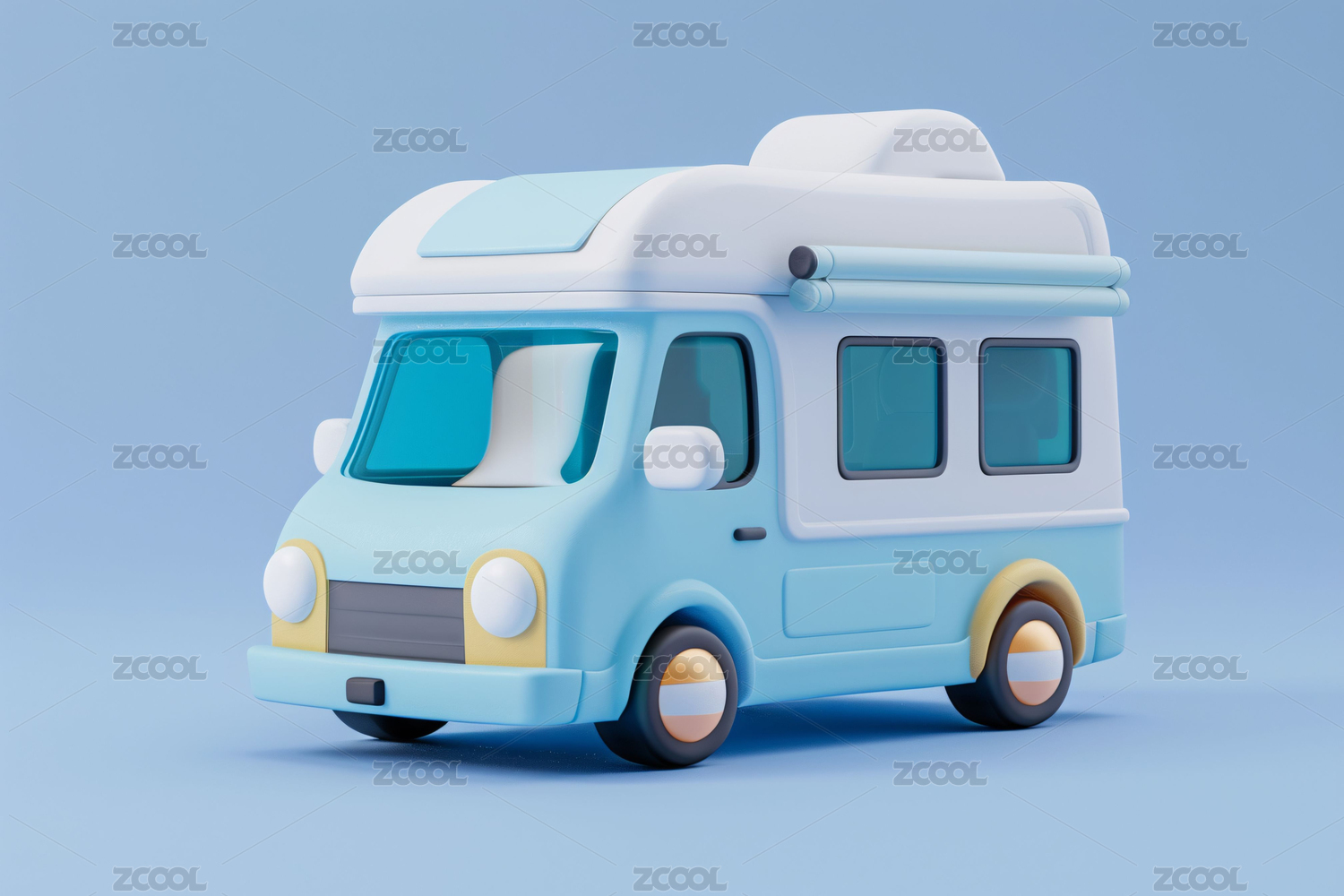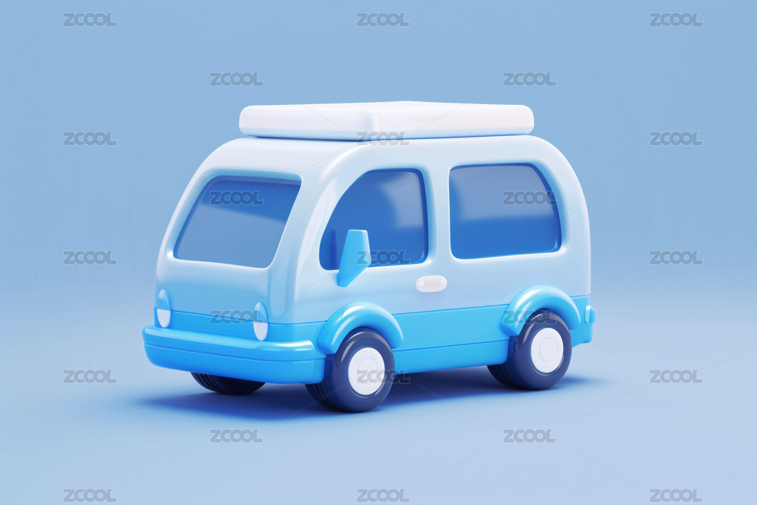 旅行汽车三维插画,五一劳动节十一黄金周出