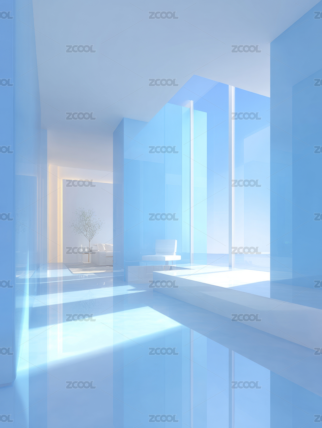 白色现代建筑室内空间背景图