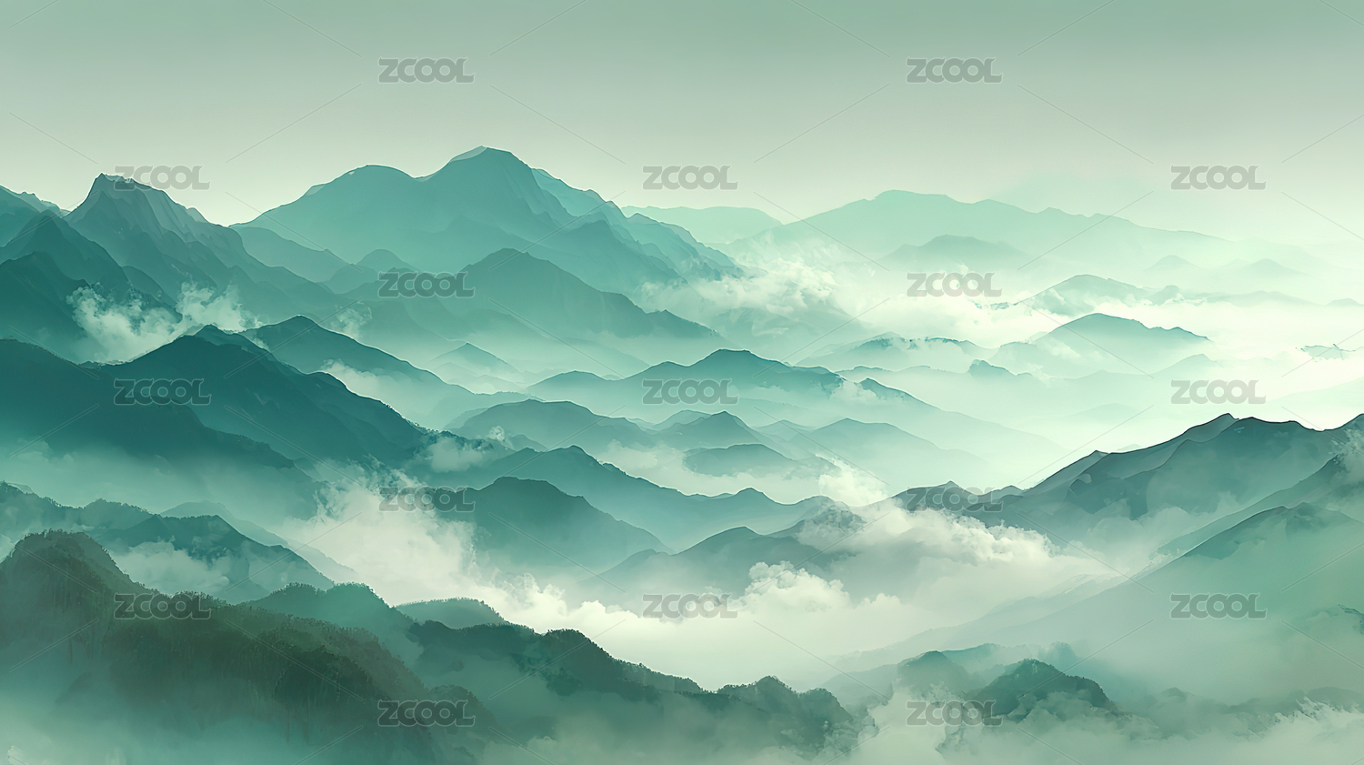 中国风青山意境插画背景