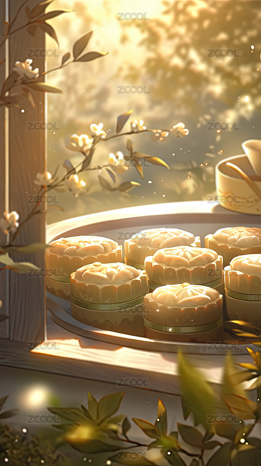 放置在窗边的月饼中秋节主题