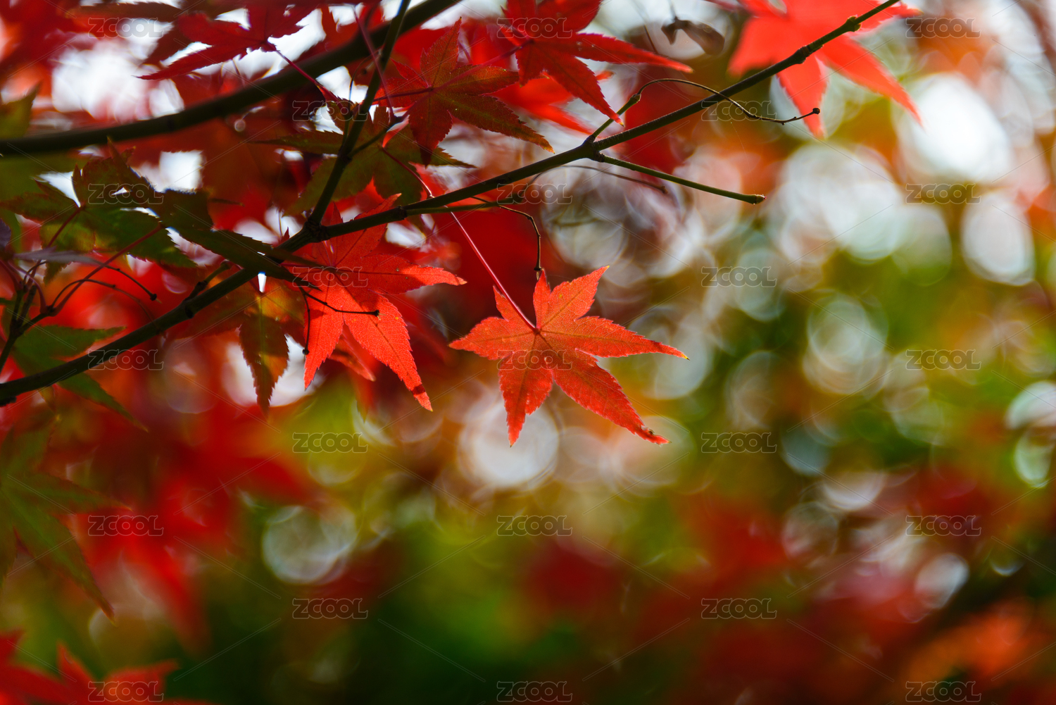 深秋逆光照耀下晶莹剔透的红色枫叶