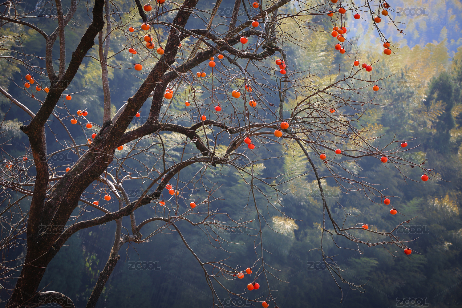 中国武汉罗田錾字石村甜柿第一村柿子树景观