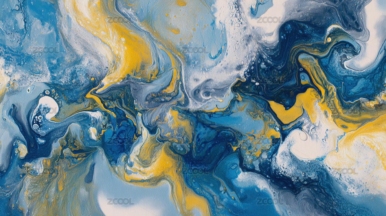 蓝黄交织的抽象流体图案