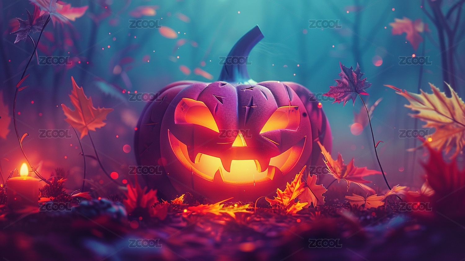 万圣节鬼怪秋天设计装饰卡通插画海报背景