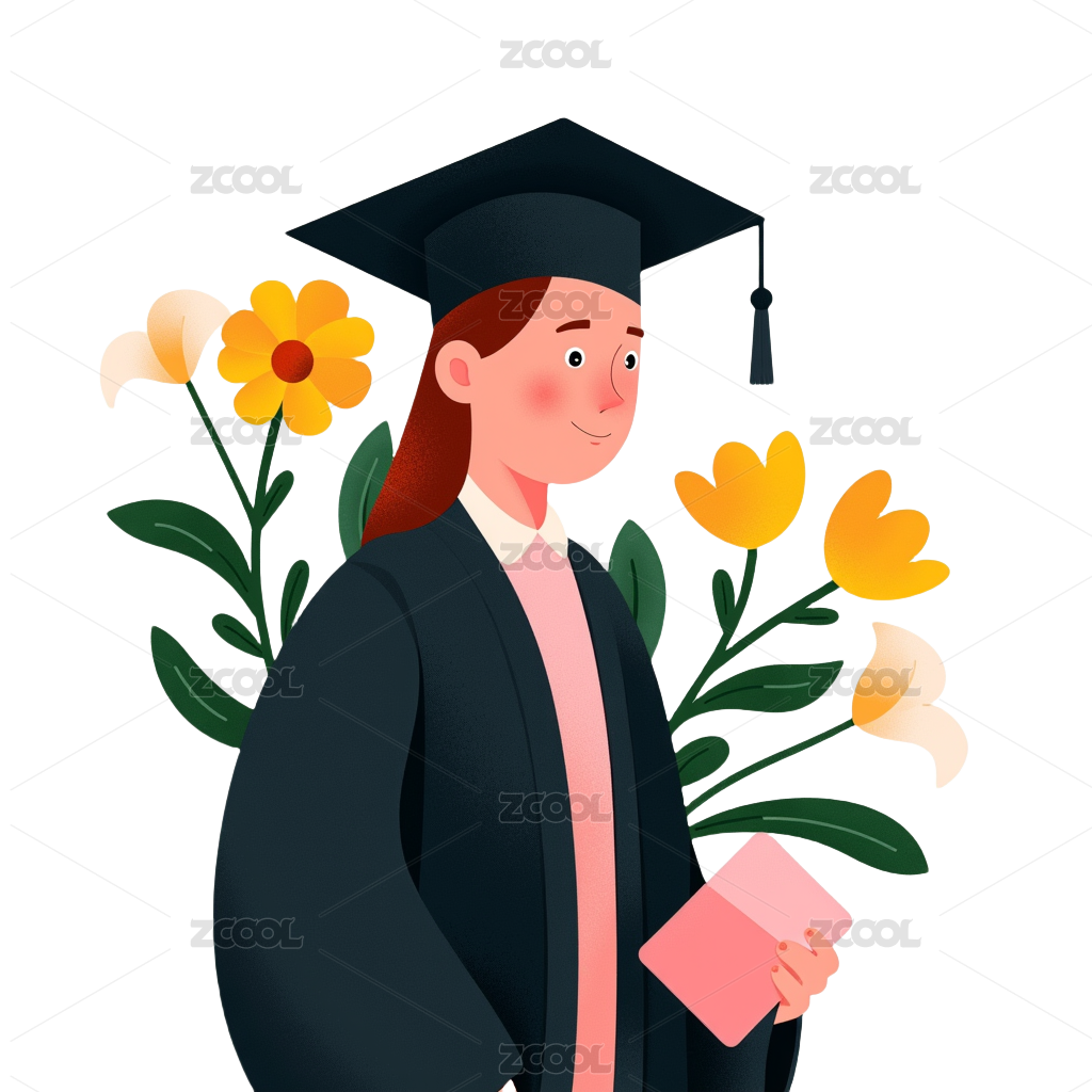 花丛中一个穿着学士服的女性拿着证书