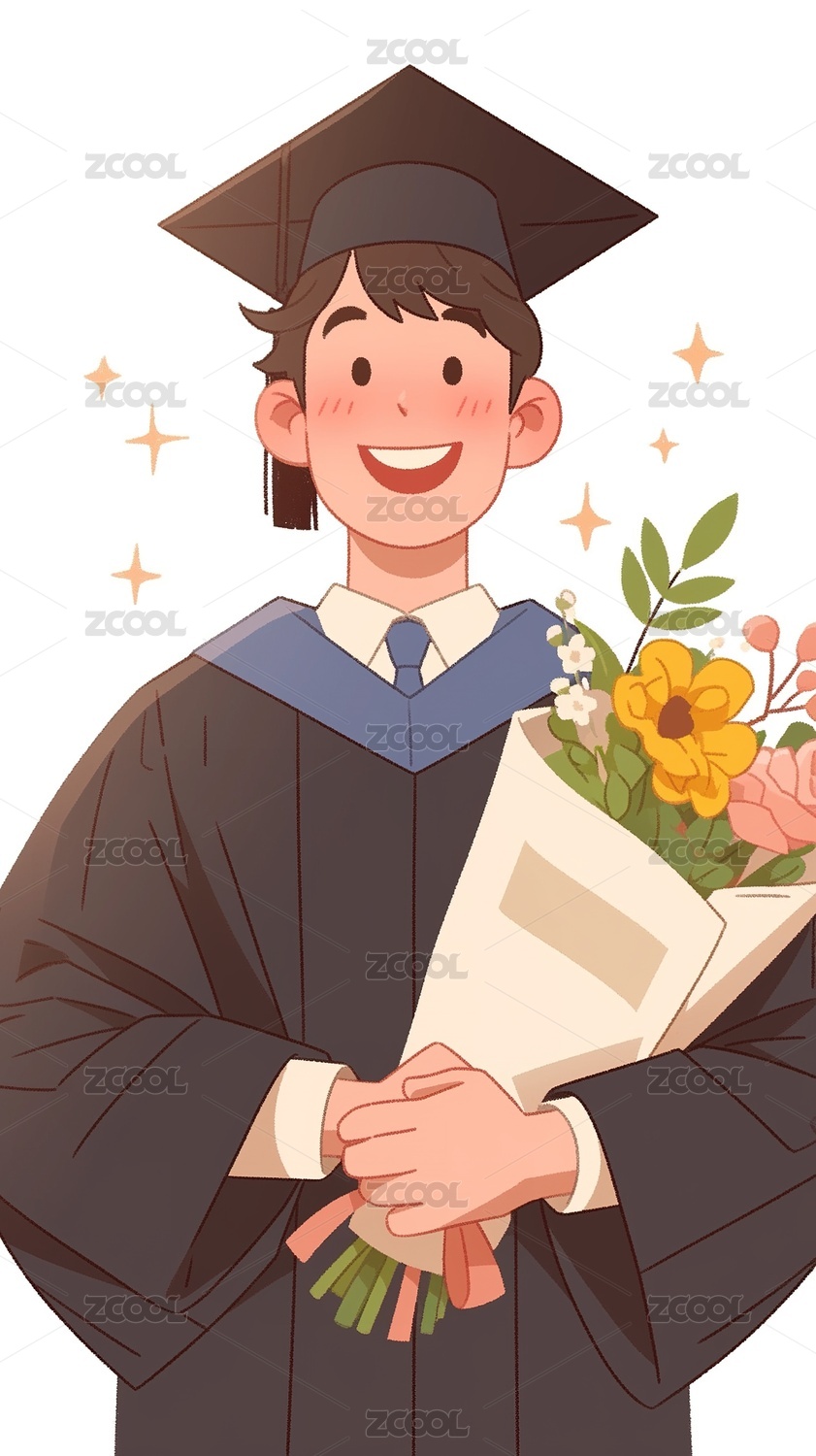 穿学士服抱着花的毕业生