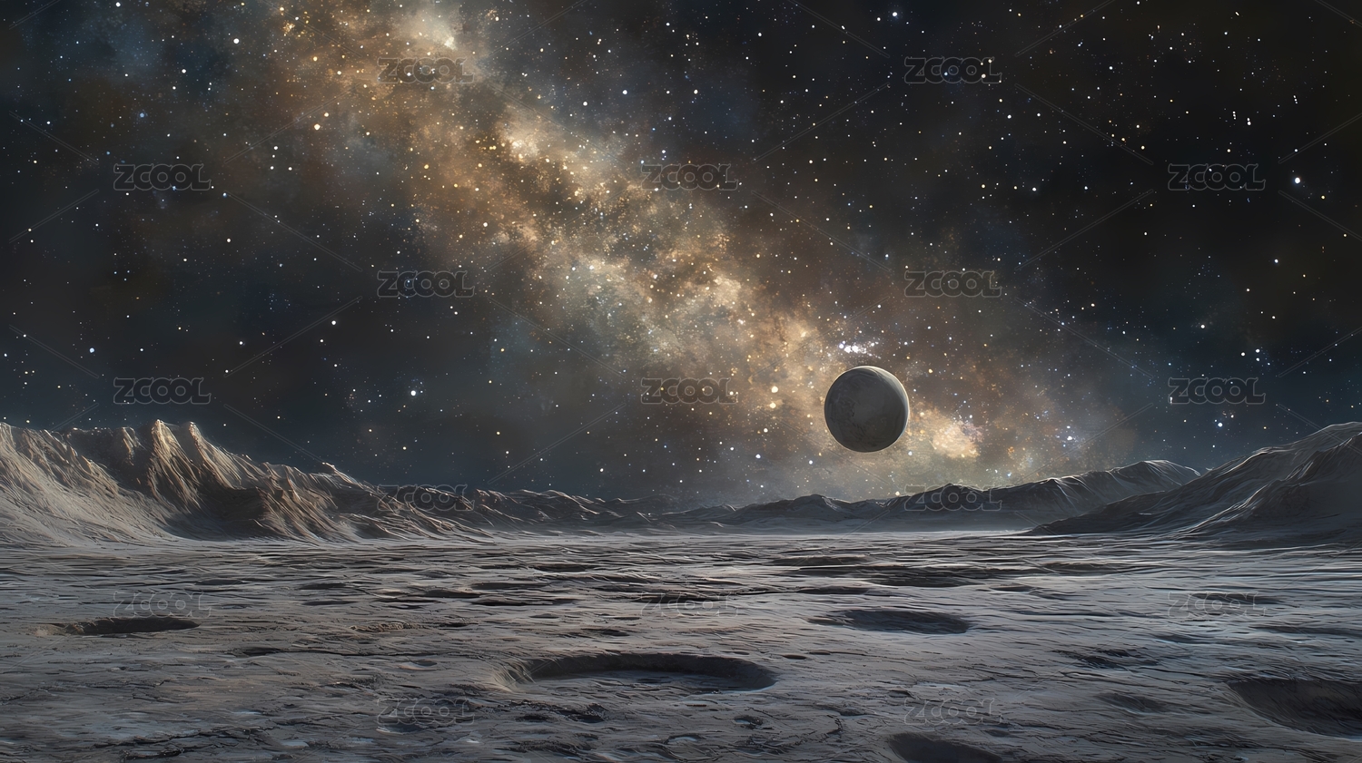 天空,AI数字艺术,月亮,自然美,高山,天文学,旅行,太空,地形,海洋