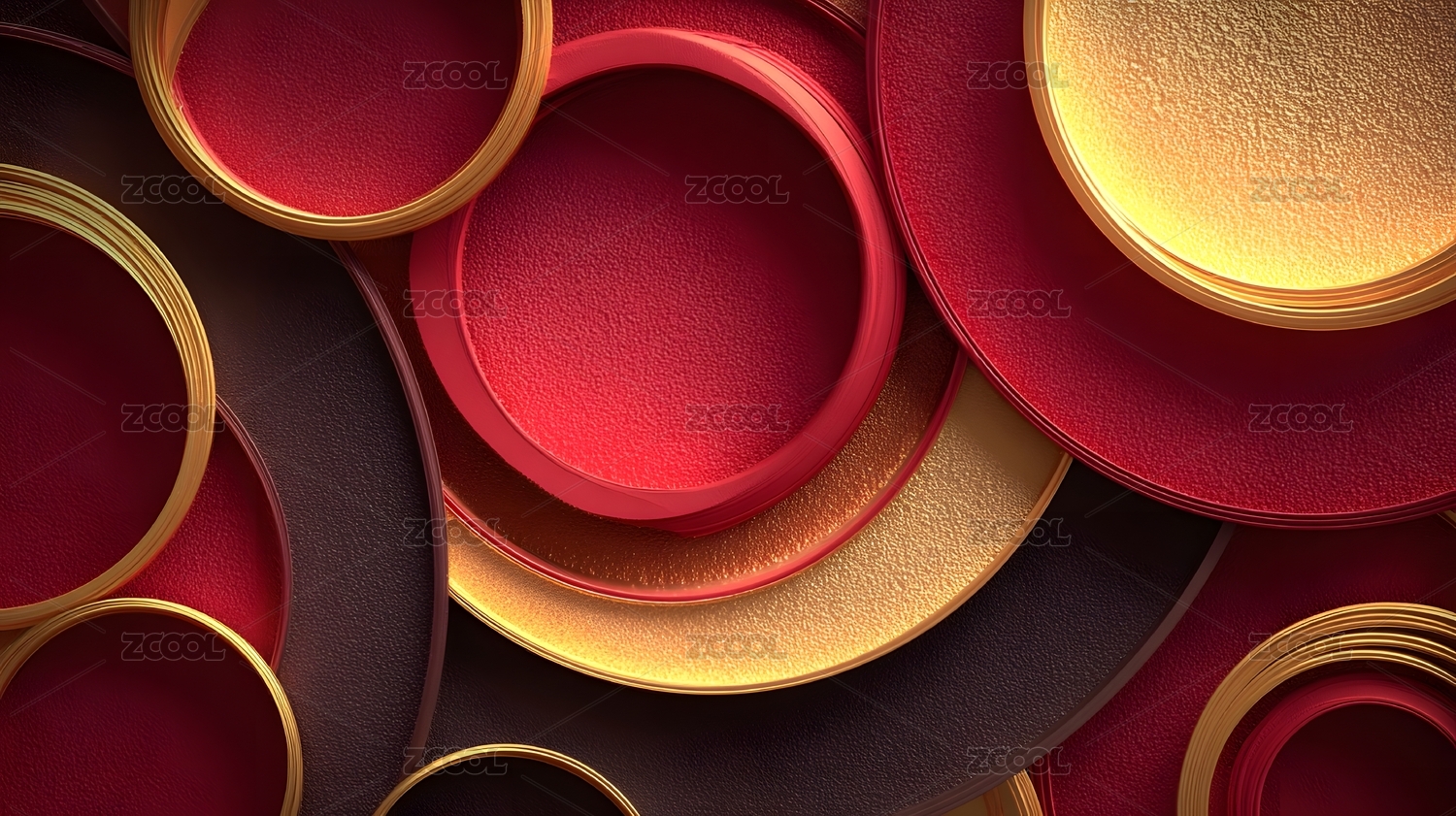 红色圆环堆叠形成抽象的几何图案