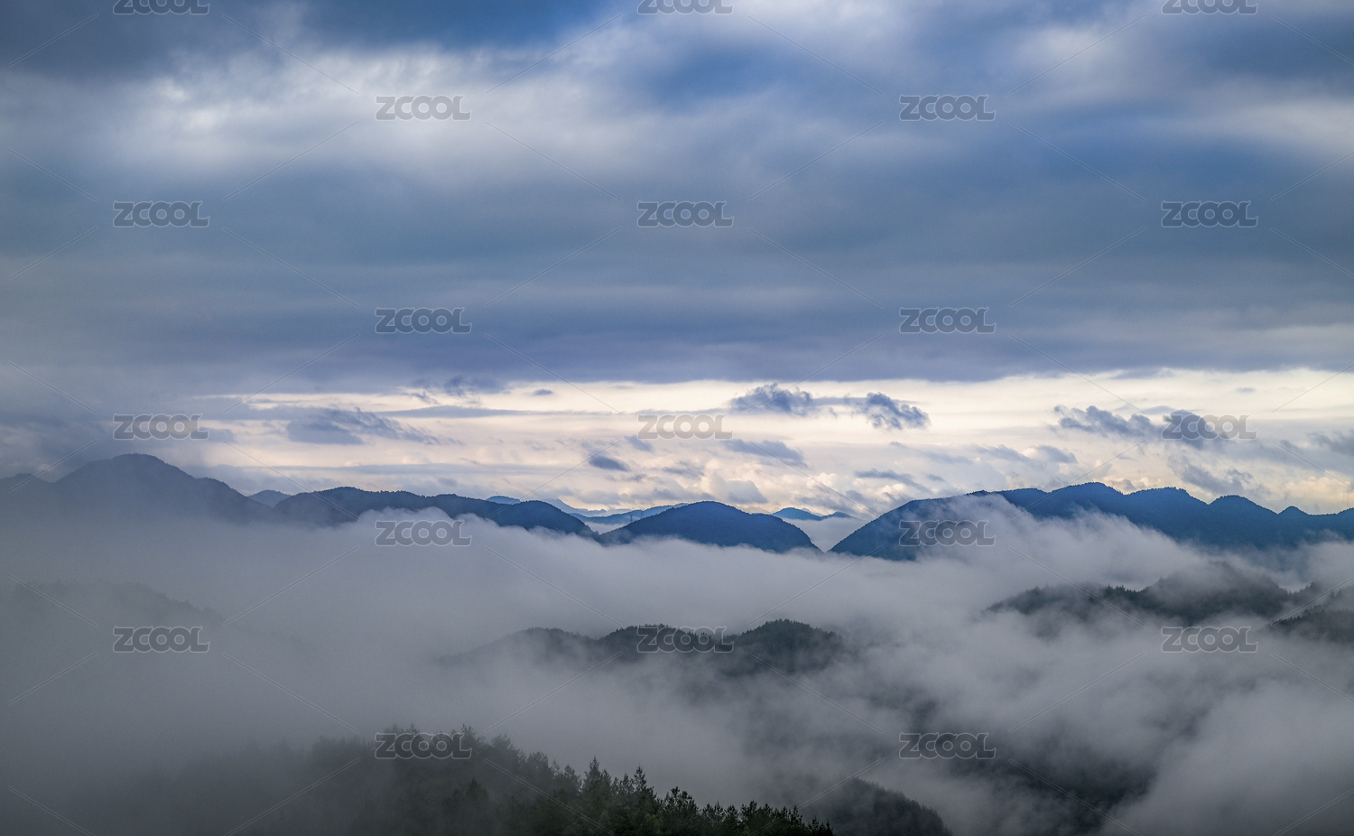 夏季早晨重庆市綦江区黑山镇黑山谷南门晨雾中的茫茫群山
