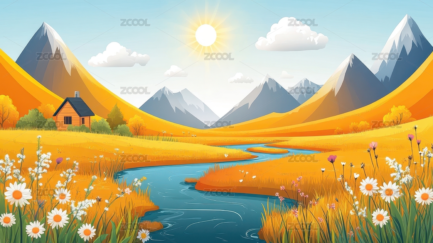 AIGC202405,新能源,光伏,风能,电力,清洁能源,乡村,山野,户外,自然