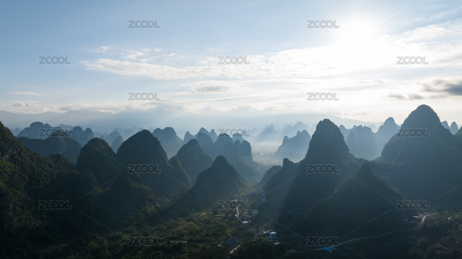 广西桂林阳朔兴坪古镇喀斯特峰林自然风光