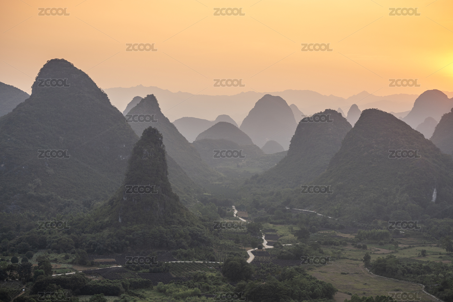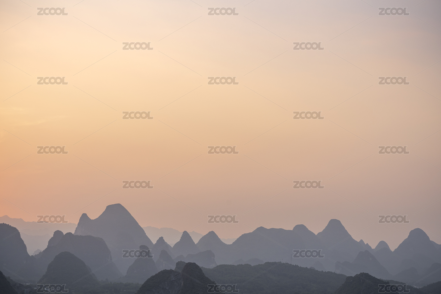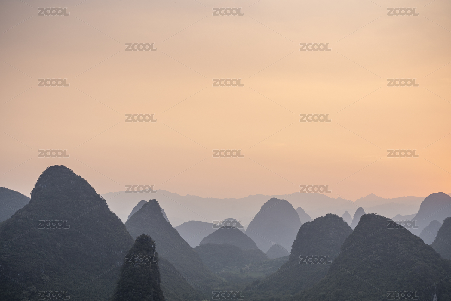 桂林兴坪古镇老寨山夕阳晚霞群山剪影