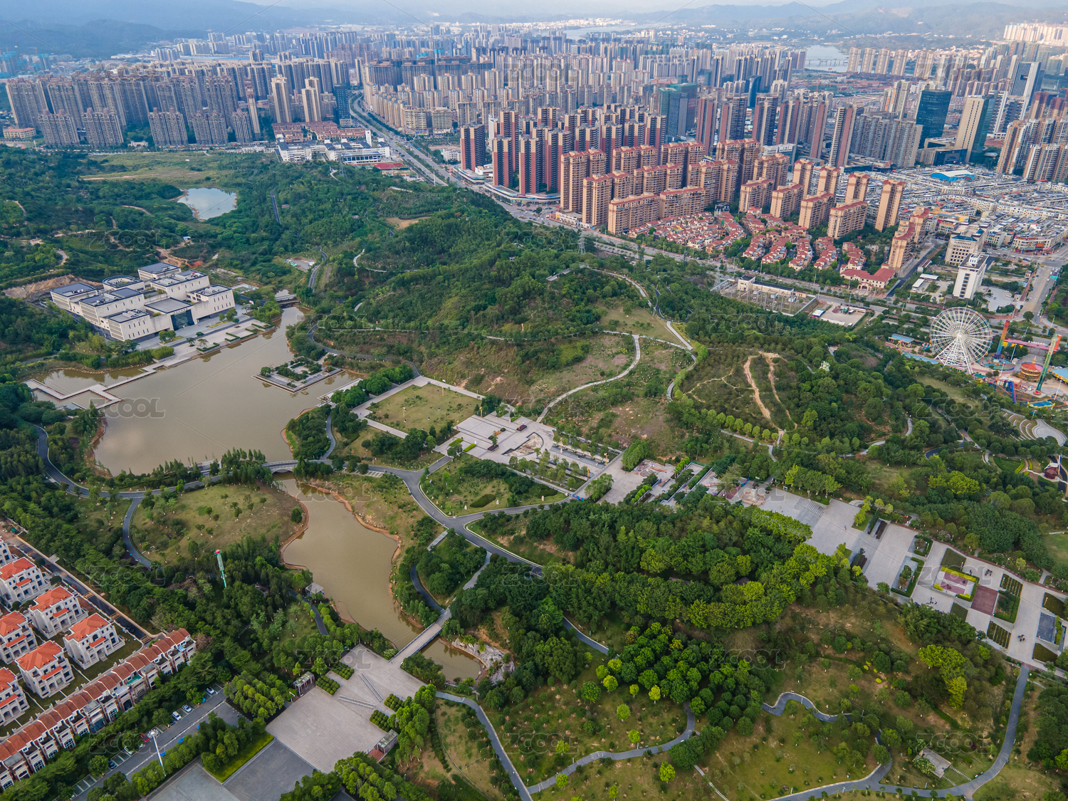 中国广东省河源市客家文化公园航拍景观