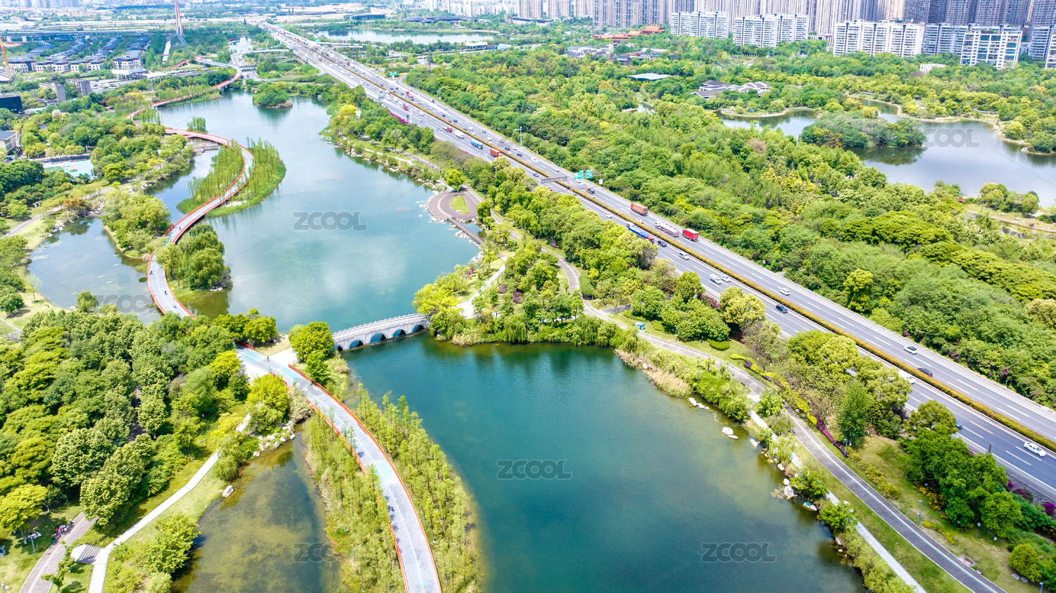 成都锦城湖公园与绕城高速航拍