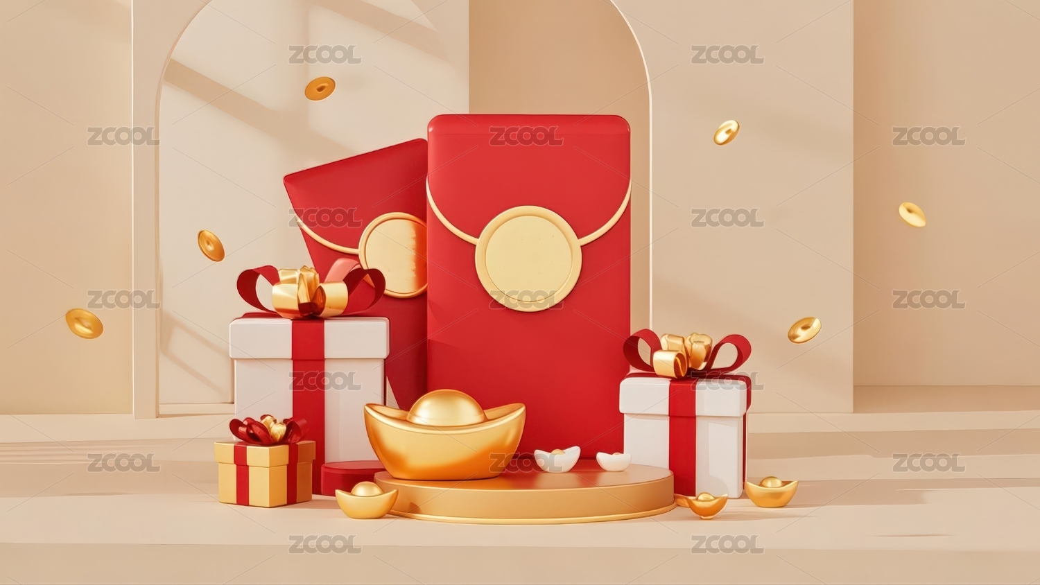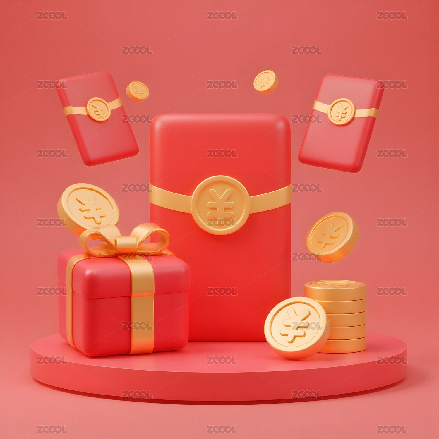 红包,金币,舞台,营销,节日,3D