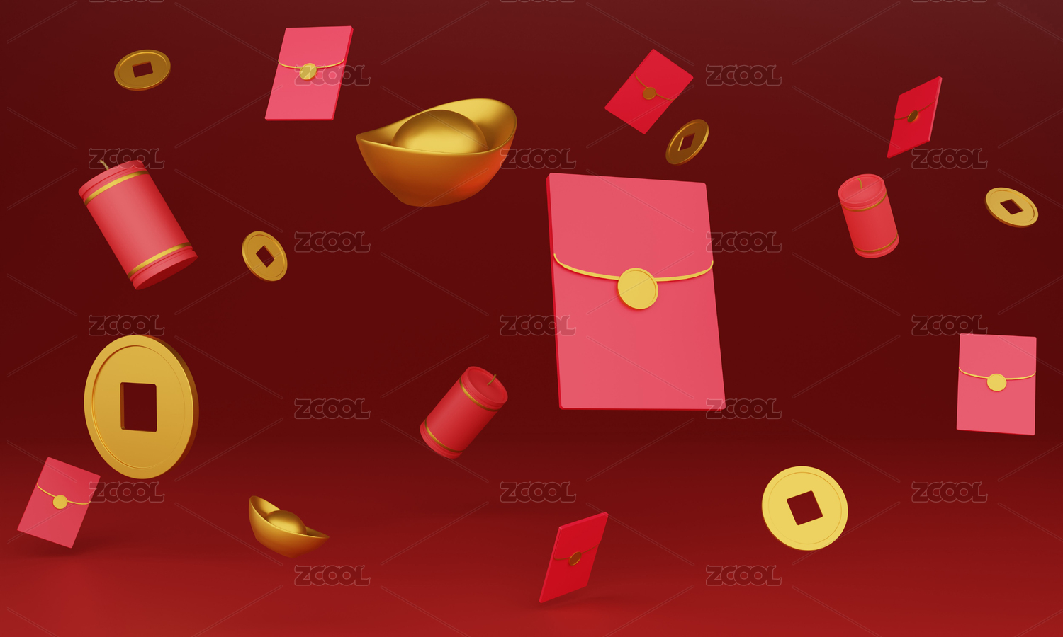 3D渲染节日红色背景