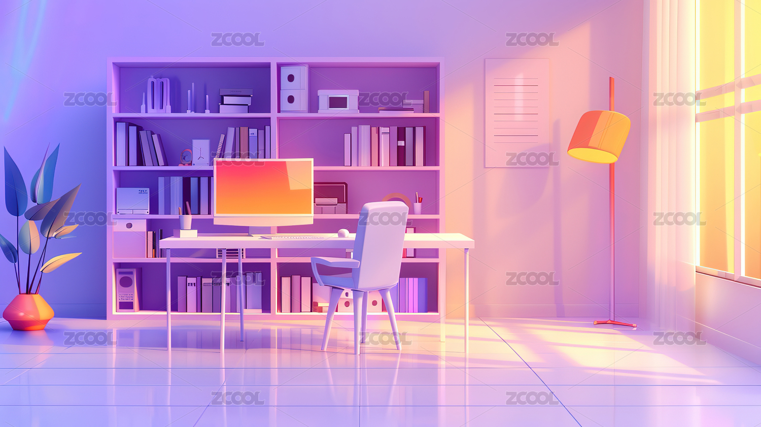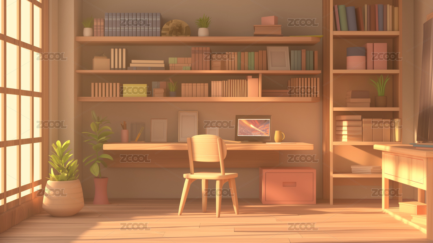 3d卡通风格的书房办公室