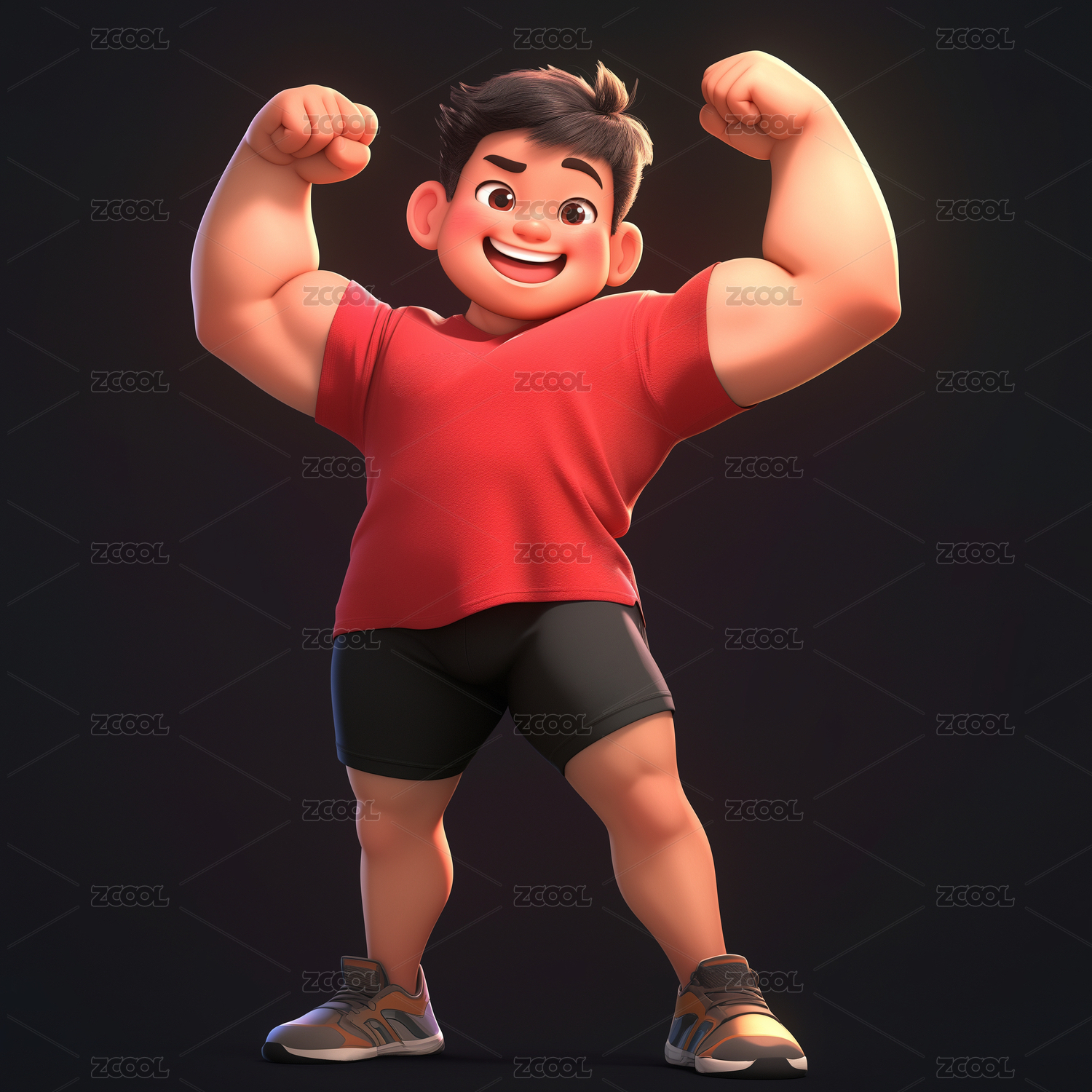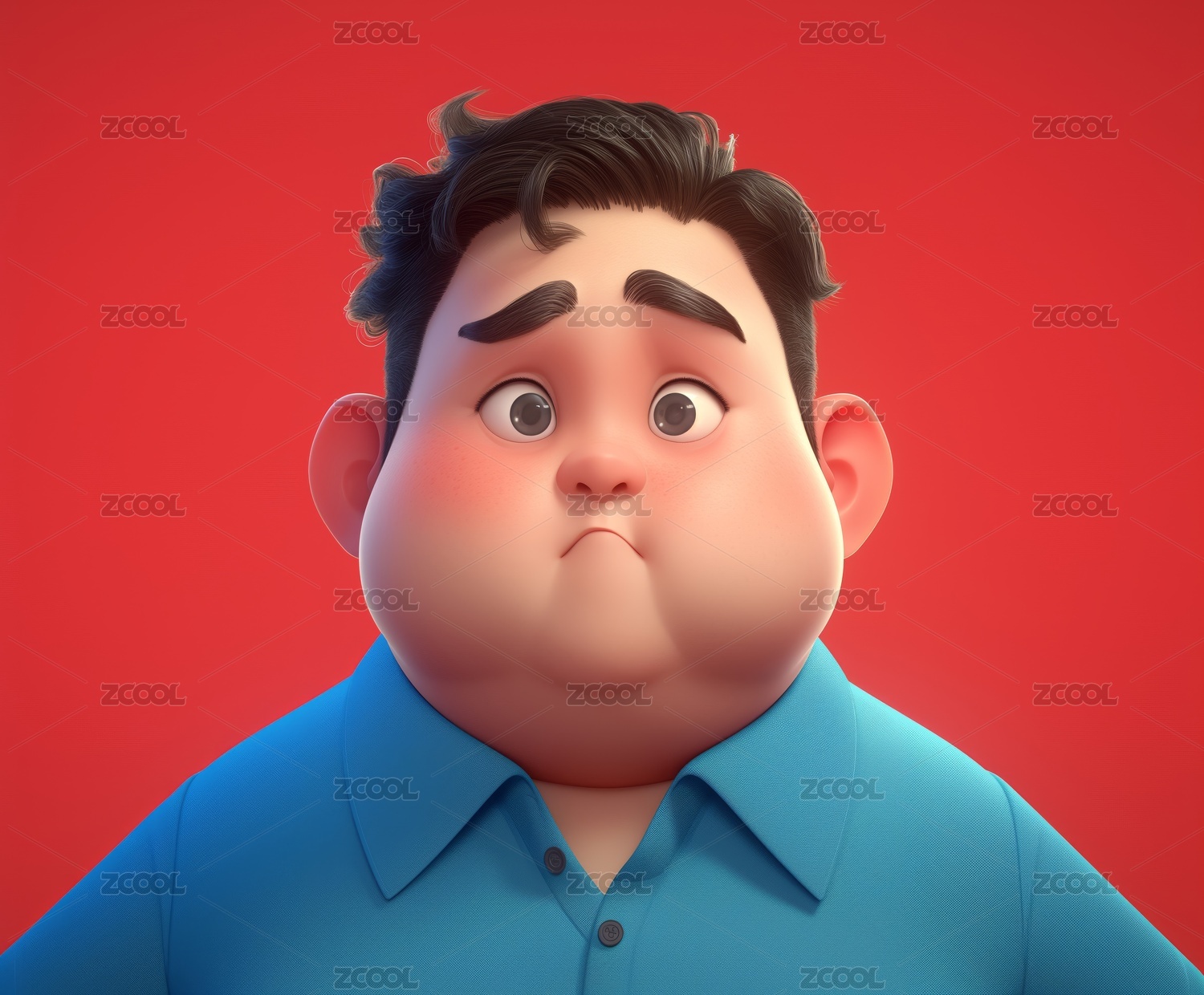 夸张,亚洲,肥胖,东方,男性,3D,卡通,立体,胖,黑发