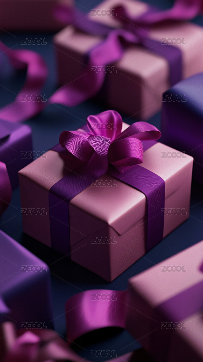 粉色背景上的紫色礼盒