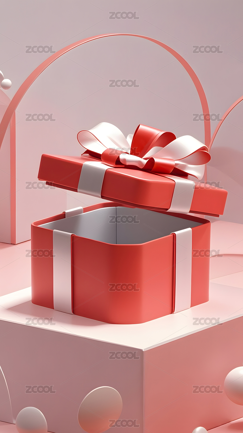 3d渲染的红色礼盒打开