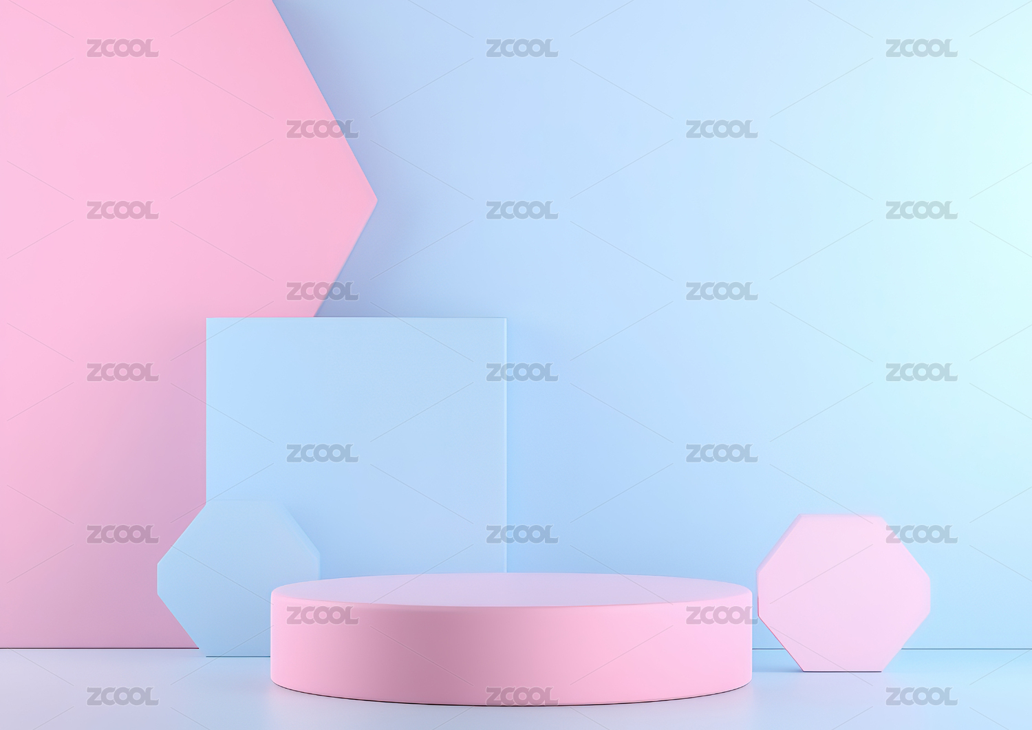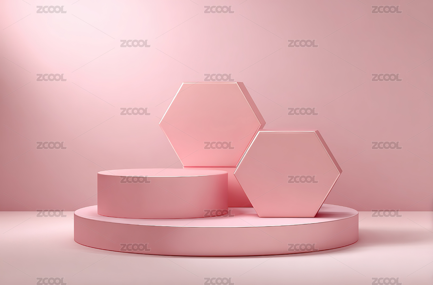 粉色,白色,展示台,几何形状,3D渲染,产品展示,现代设计,简约风格,家居装饰,六边形