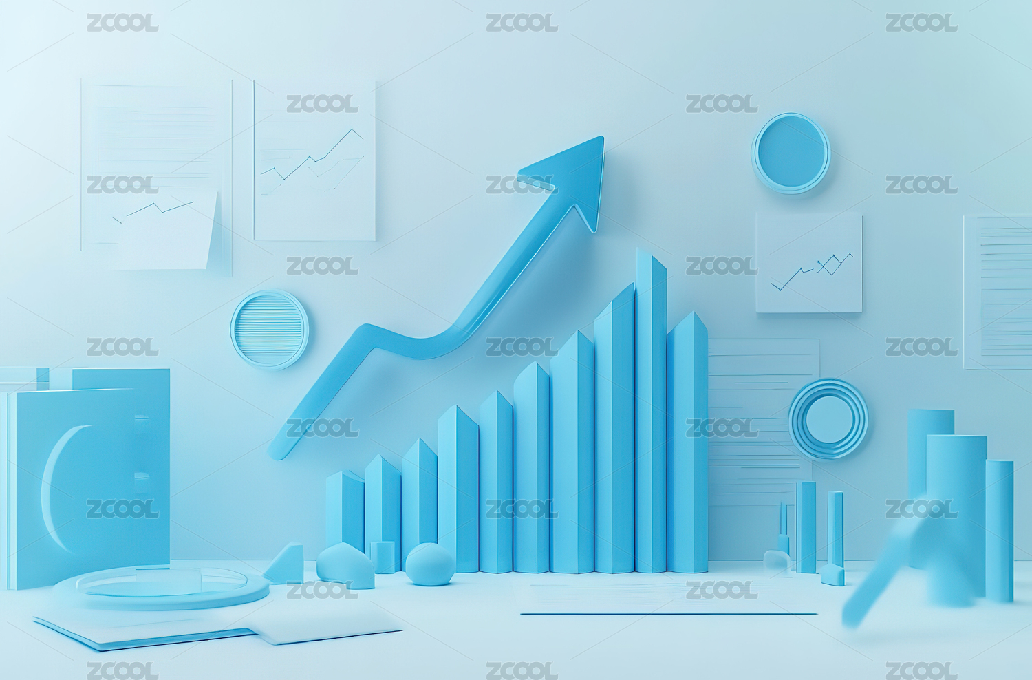 数据分析图形商业经济数据图表增长3D插图