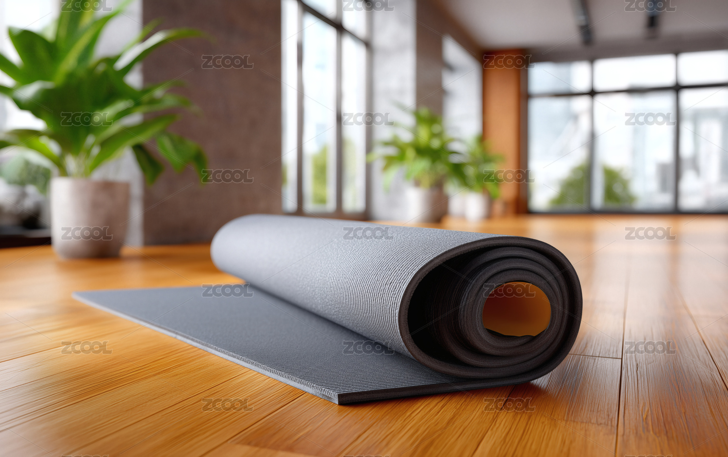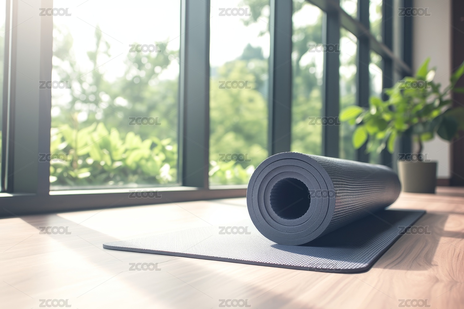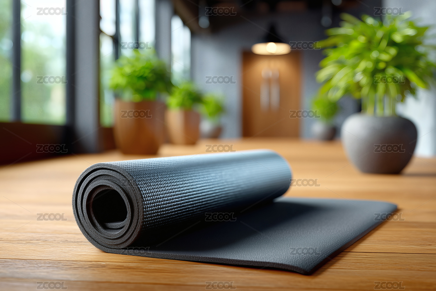 现代,白色,简约,黑色,光线,空间,瑜伽垫,木地板,健身,运动