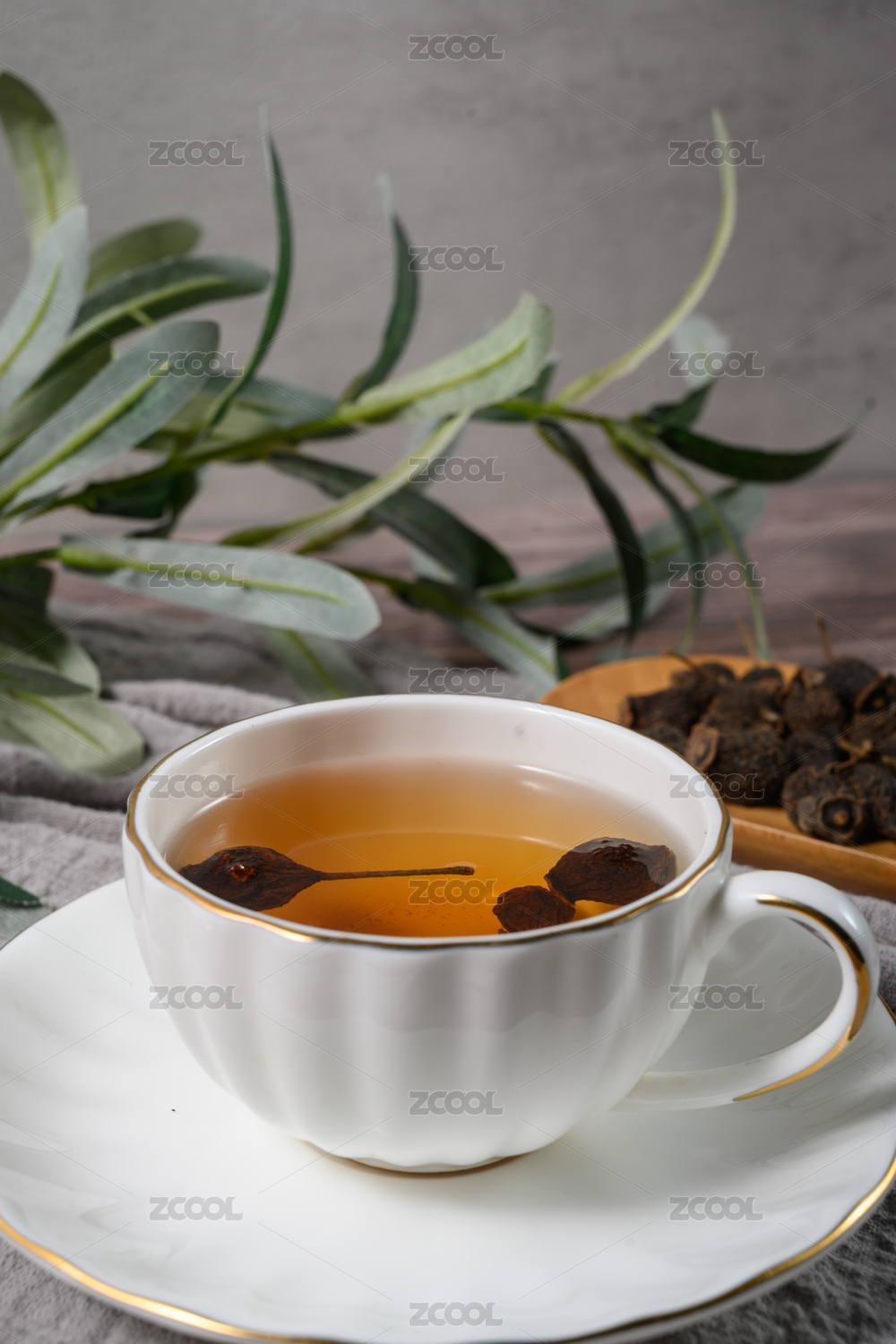 桌面上个的杯子里的甘甜可口的龙胆草茶