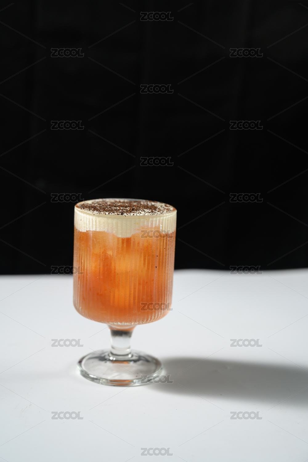 桌面上的杯子里的美味可口的奶盖红茶