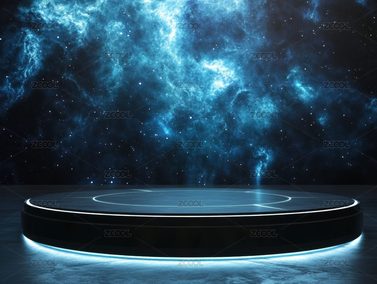 3D蓝色发光圆形电商产品展台