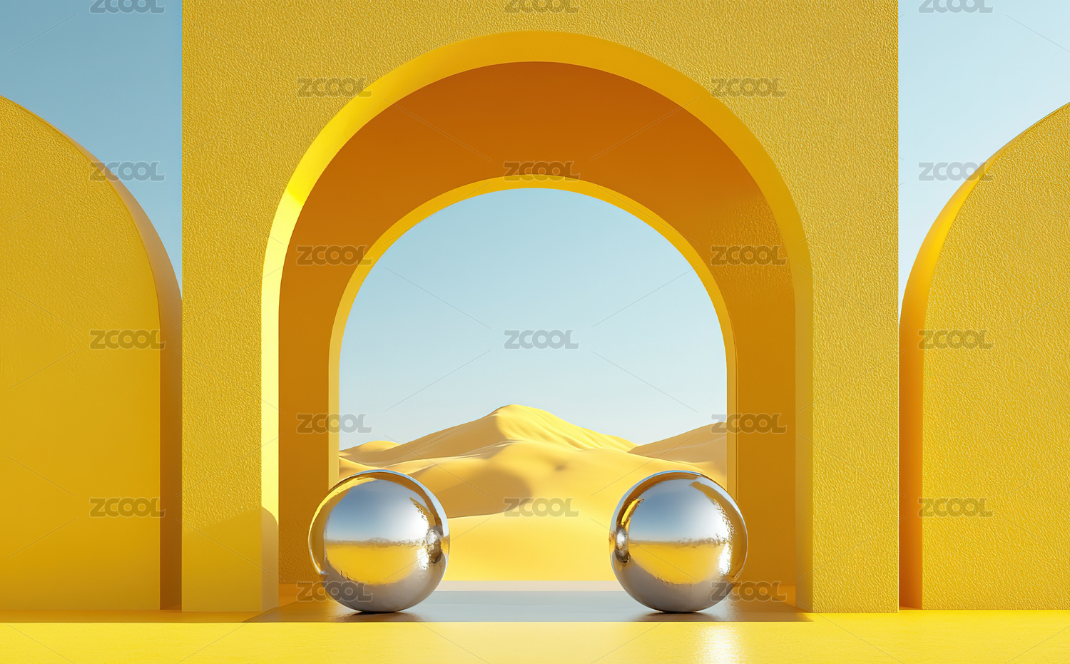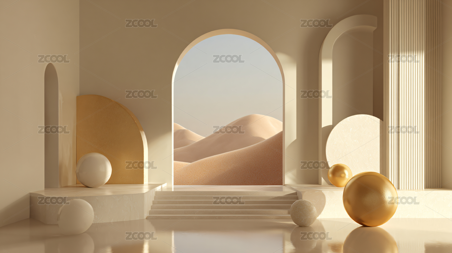 金色几何沙漠建筑场景