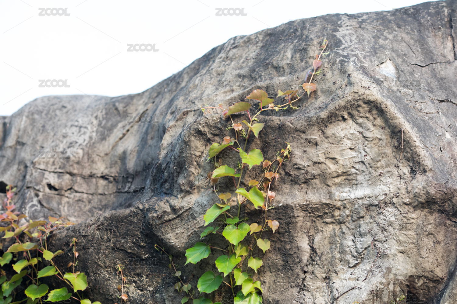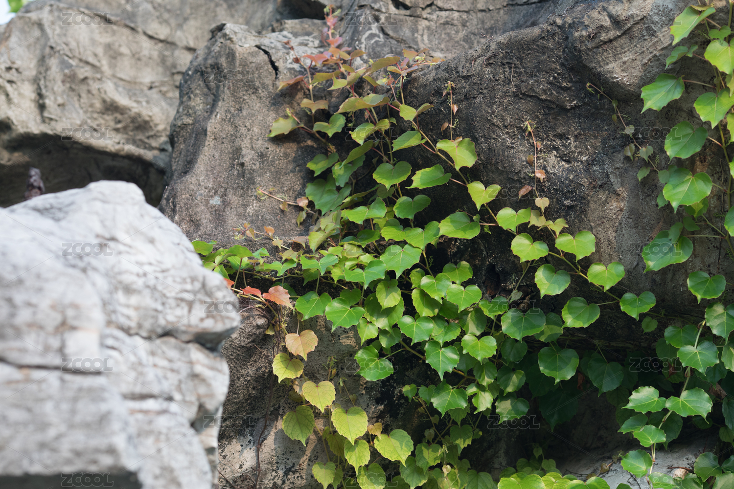 岩石上生长的爬山虎