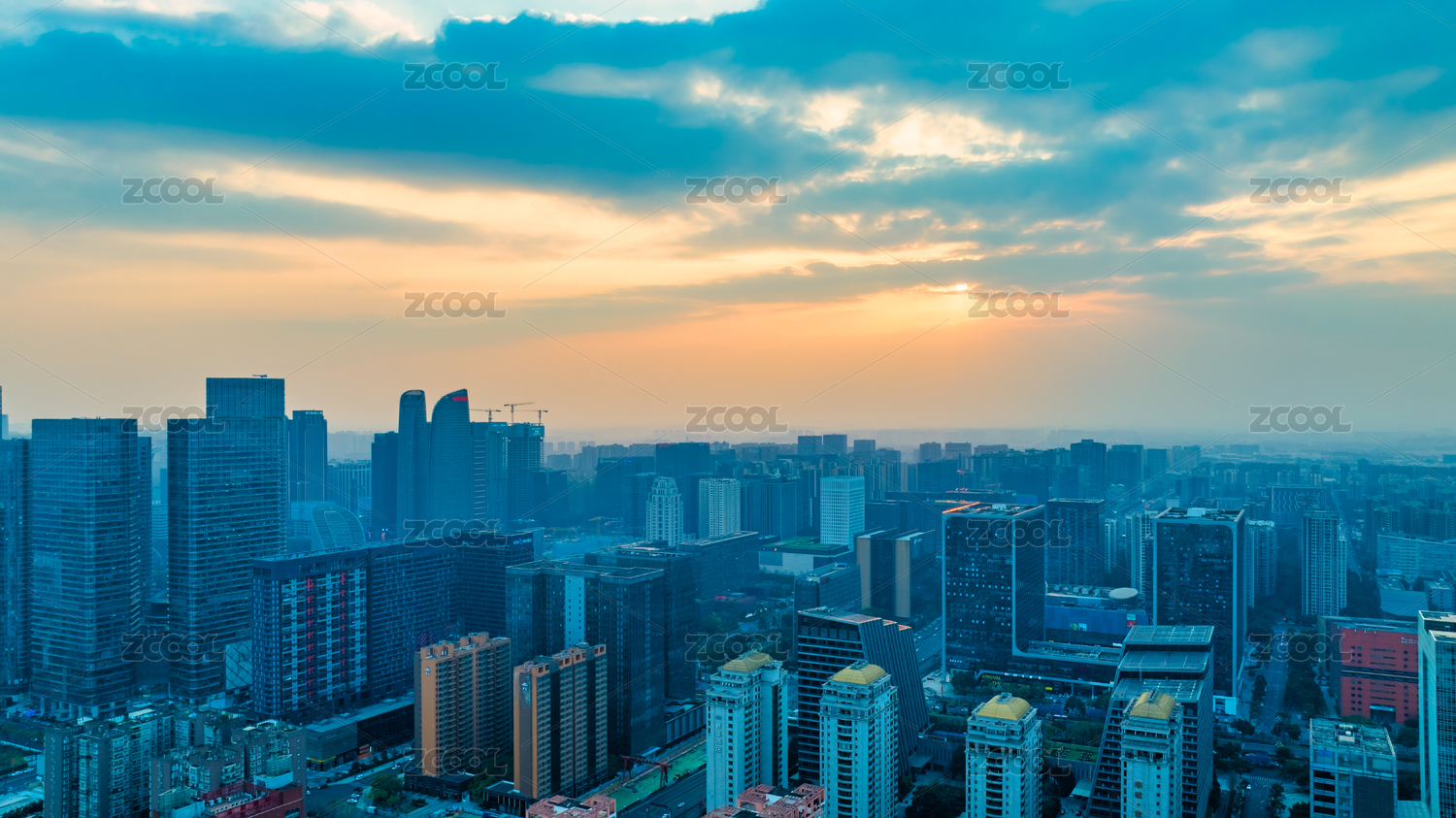 成都城市地标日出朝霞